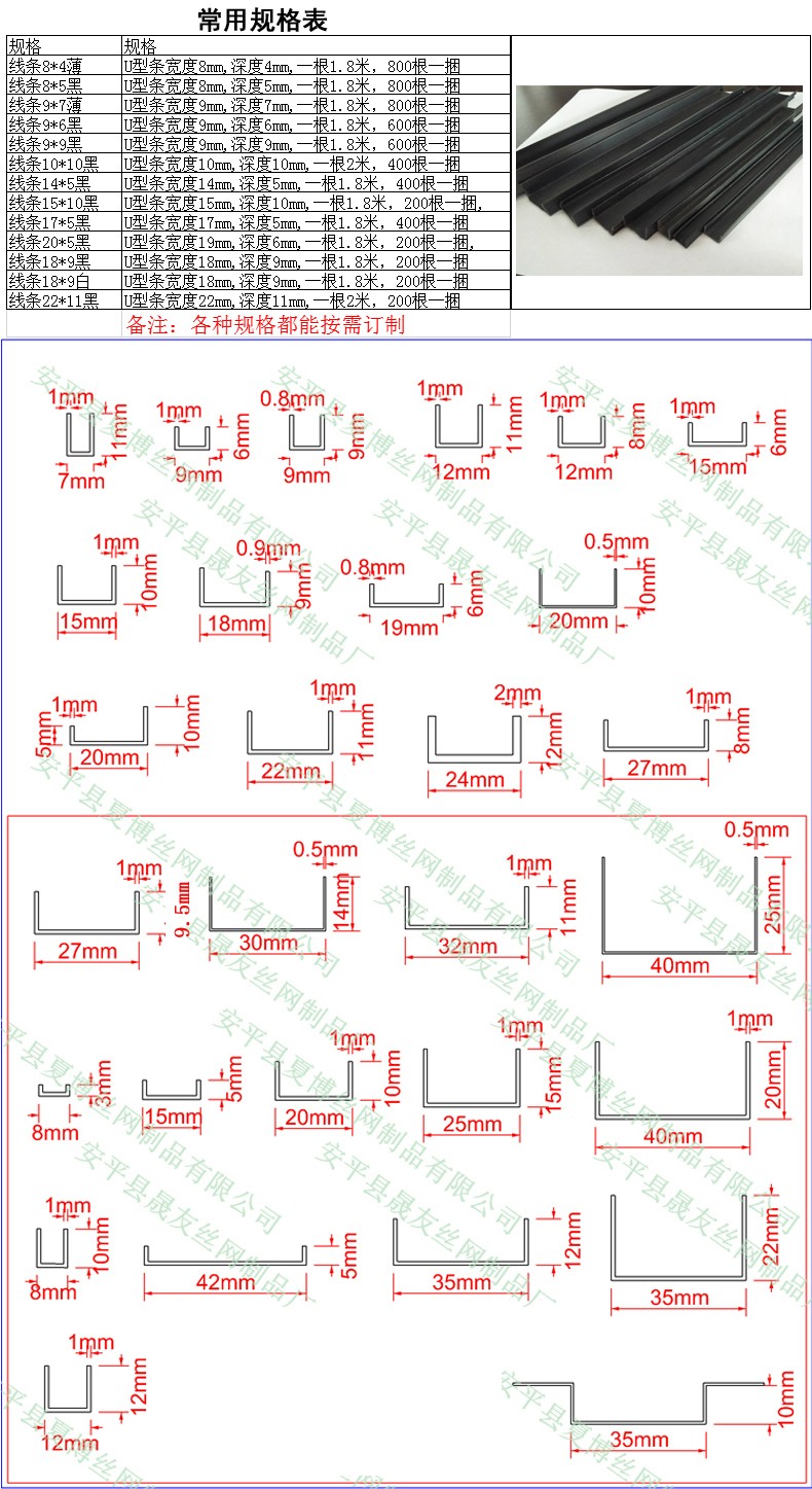 線條9*9黑 | U型條寬度9mm,深度9mm,一根1.8米,600根一大捆 | 300 | 30 |
